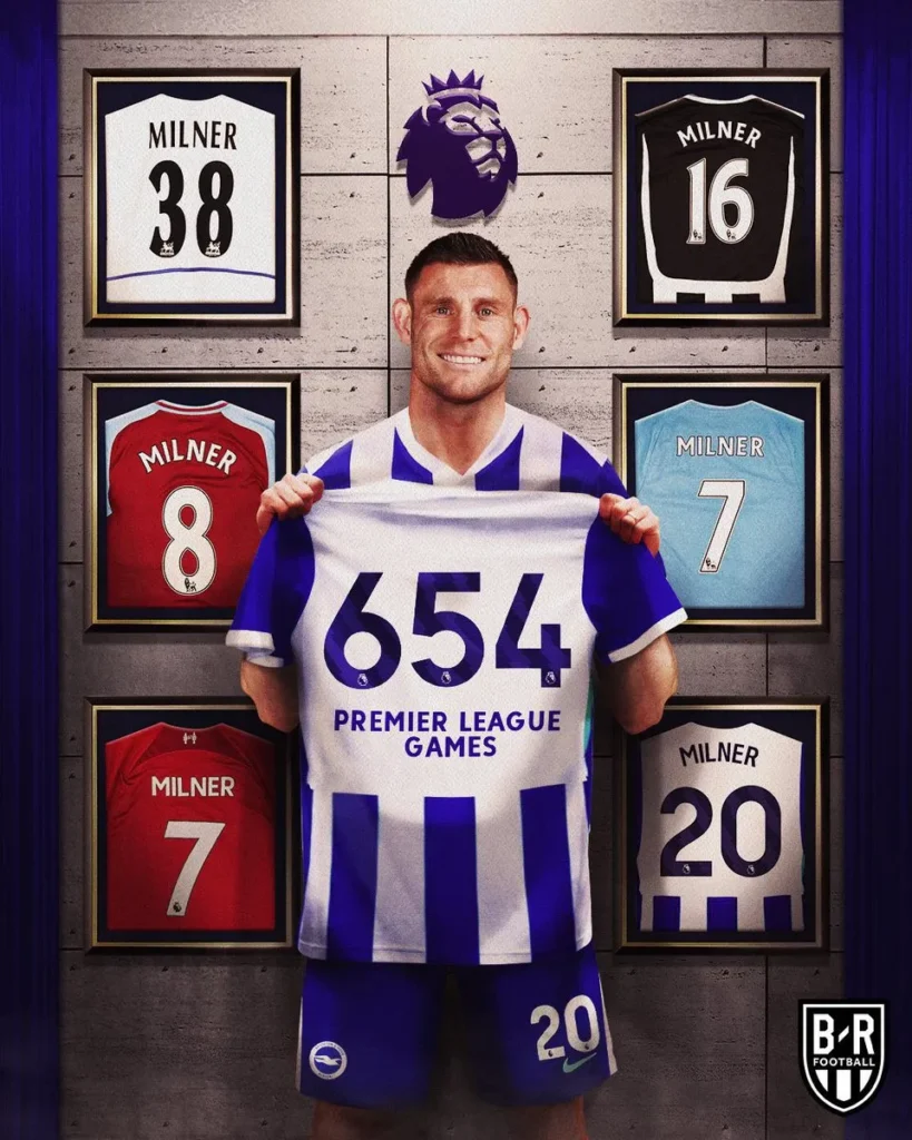 ※ミルナーはつい先日プレミアリーグの最多出場記録を更新しました。