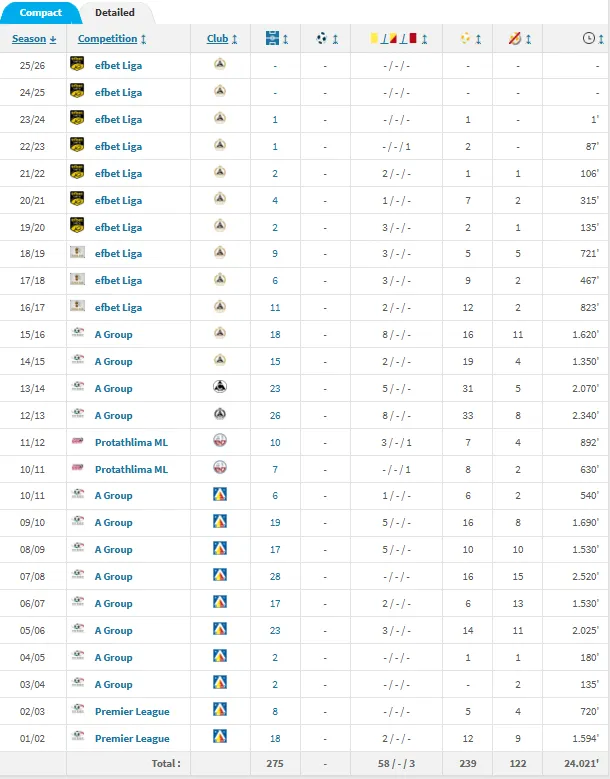 ある意味、ブルガリアサッカーのレジェンド的存在になってるわ。今のところ彼が出場した最後の試合は、2025年5月に行われたスラヴィア・ソフィア vs ロコモティフ・ソフィアの試合(0-0)。その試合では90分フル出場してた。