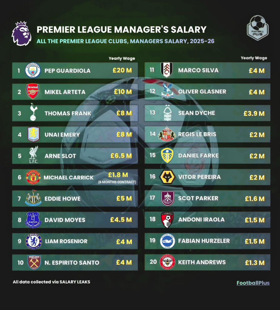 2025-26シーズン開幕時点のおけるプレミアリーグの監督年俸を見てみよう!